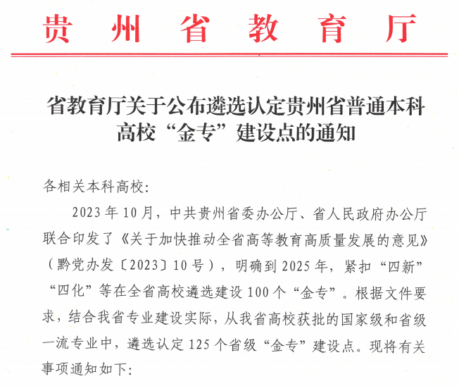 喜訊!我校四個(gè)專業(yè)入選貴州省“金專”建設(shè)點(diǎn)